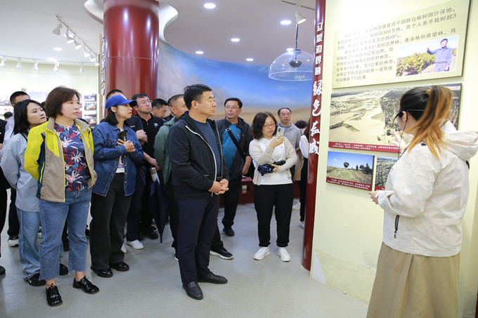 在章古臺鎮(zhèn)的遼寧省固沙研究所、沙地所基地,學(xué)員們深刻感受到了一代一代彰武治沙人始終堅守讓沙漠變綠洲的信念,接力傳承治沙理念的執(zhí)著精神,他們硬是在科爾沁沙漠南緣栽下萬畝松林,將遼寧防沙治沙的第一道防線向北推移了13公里,在蒼茫的遼西大地創(chuàng)造了樟子松沙荒造林的奇跡,譜寫了“綠了章古臺,白了少年頭”的大漠風(fēng)流精神。