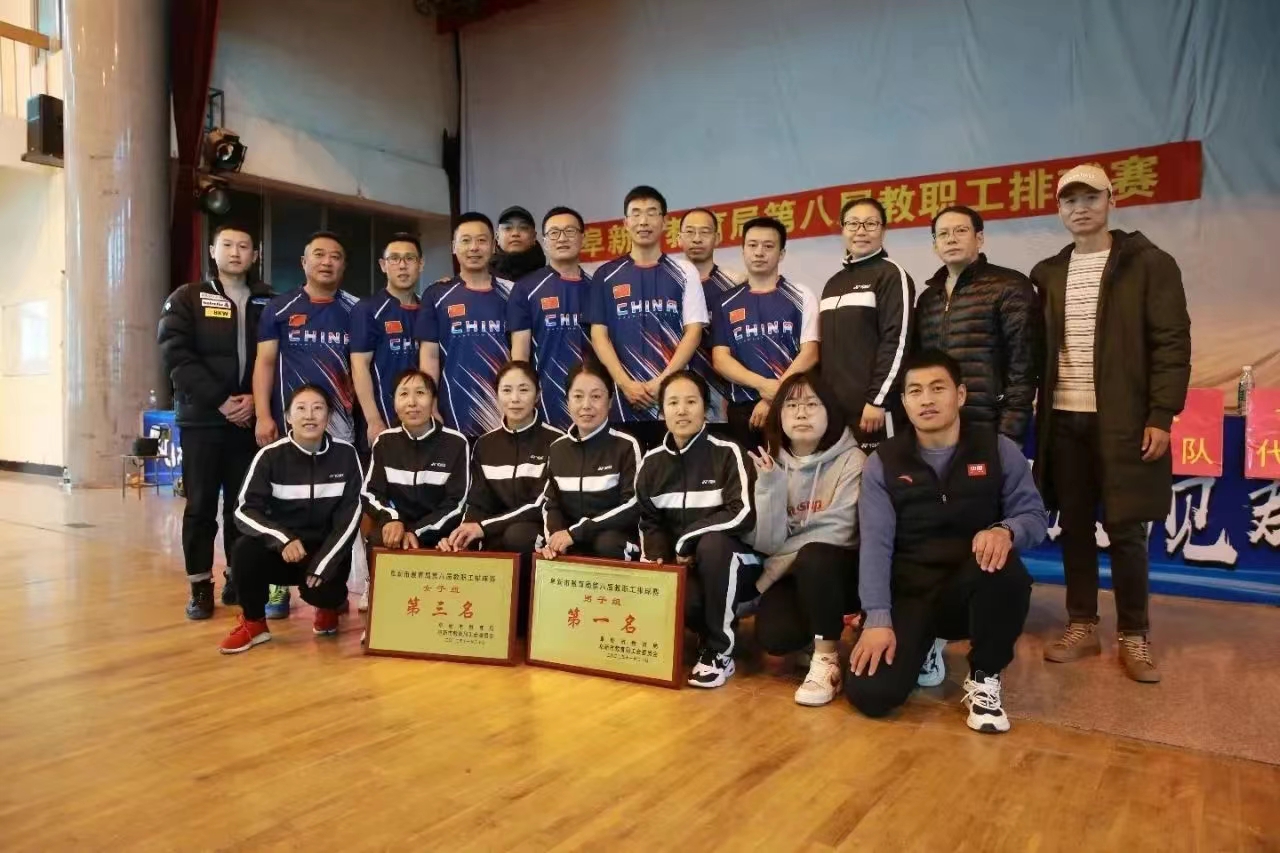 勤練揚特色,再把凱歌奏。11月18日至20日,由阜新市教育局工會舉辦的第八屆教職工排球賽在市高中和蒙中同步舉行。我校男、女代表隊在甲組比賽中,分獲冠軍和季軍!