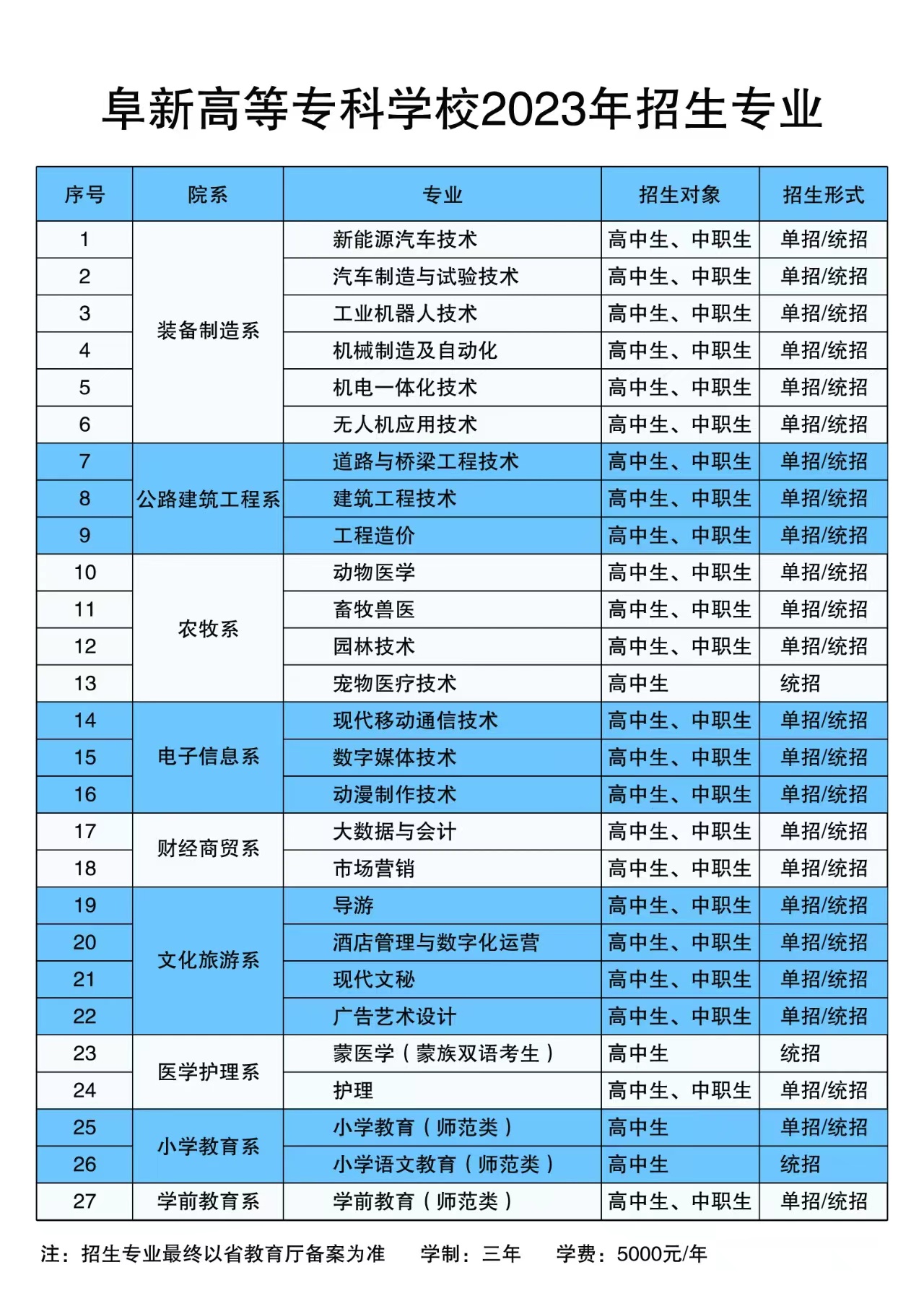 阜新高等專科學(xué)校2025年單招專業(yè)及招生計(jì)劃一覽表