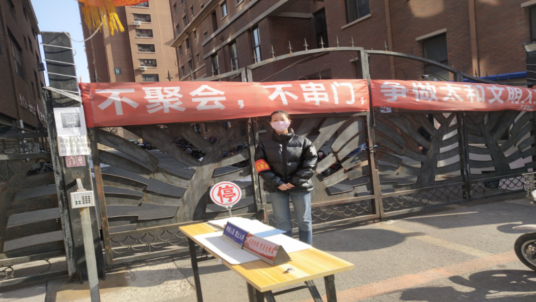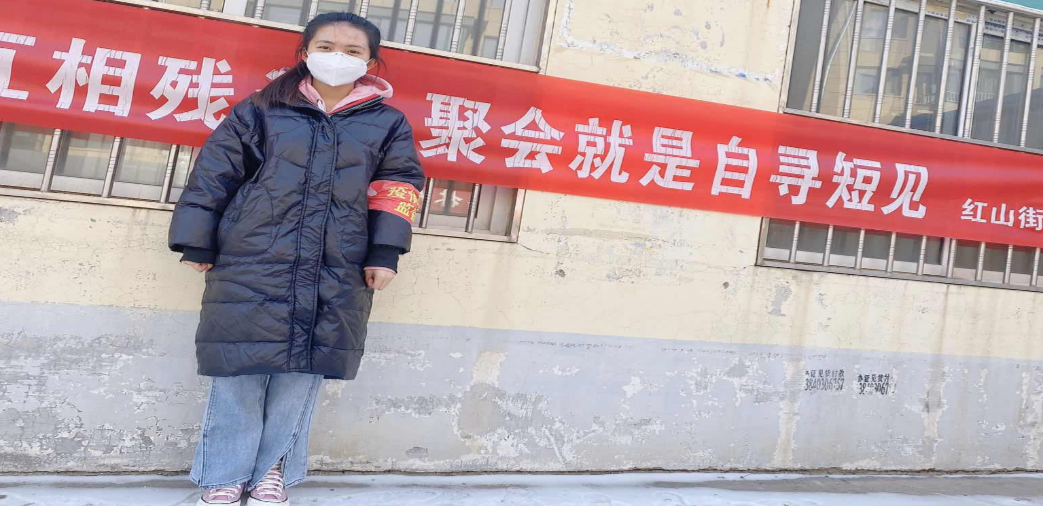 劉蕊,公建系17造價班學(xué)生。紅山街道一名抗疫志愿工作者,主要負(fù)責(zé)對進(jìn)出小區(qū)的居民測量體溫并核對出入證明、對外來車輛進(jìn)行登記等工作。