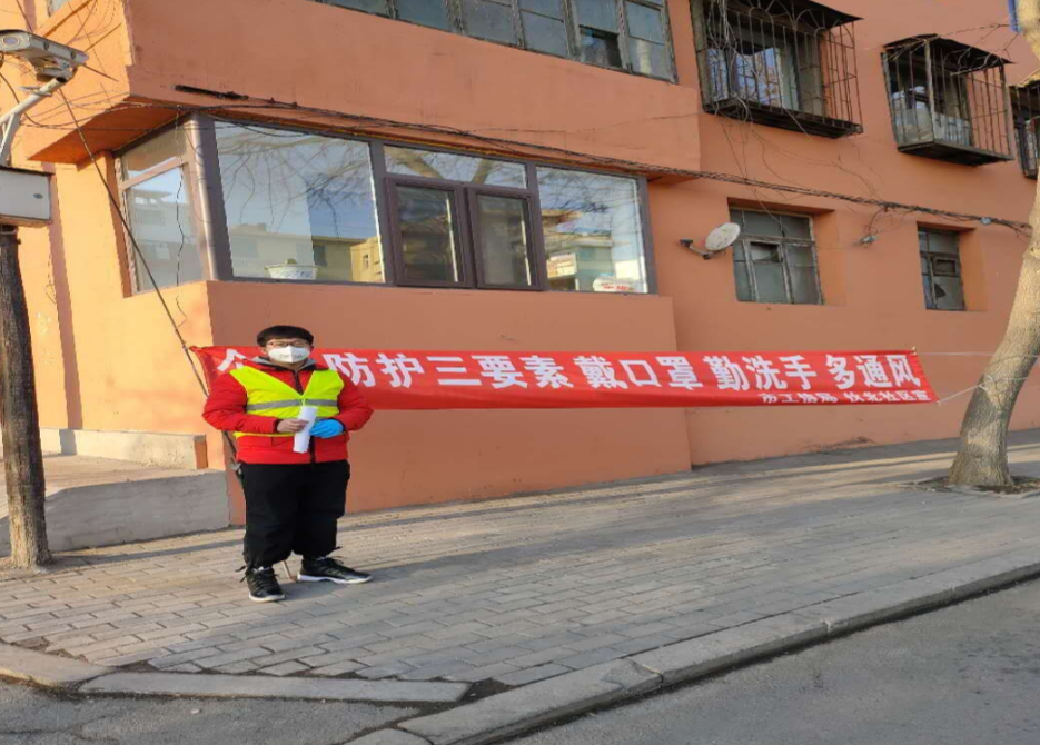 家鄉(xiāng)在朝陽市公營子村的羅靖宇是公建系17建筑班學(xué)生,在2月份積極參與到村委會組織的一線防控工作之中羅靖宇的志愿服務(wù)工作為對鄉(xiāng)民們進(jìn)行防控衛(wèi)生知識的宣傳,挨家挨戶進(jìn)行防疫知識的普及。