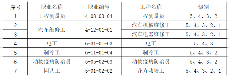 一、職業(yè)技能等級(jí)認(rèn)定職業(yè)(工種)目錄及計(jì)劃