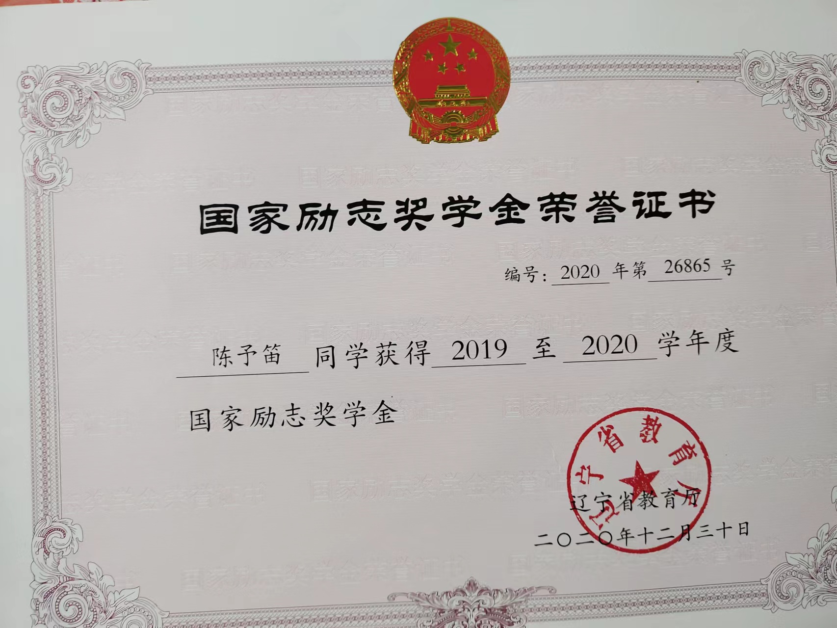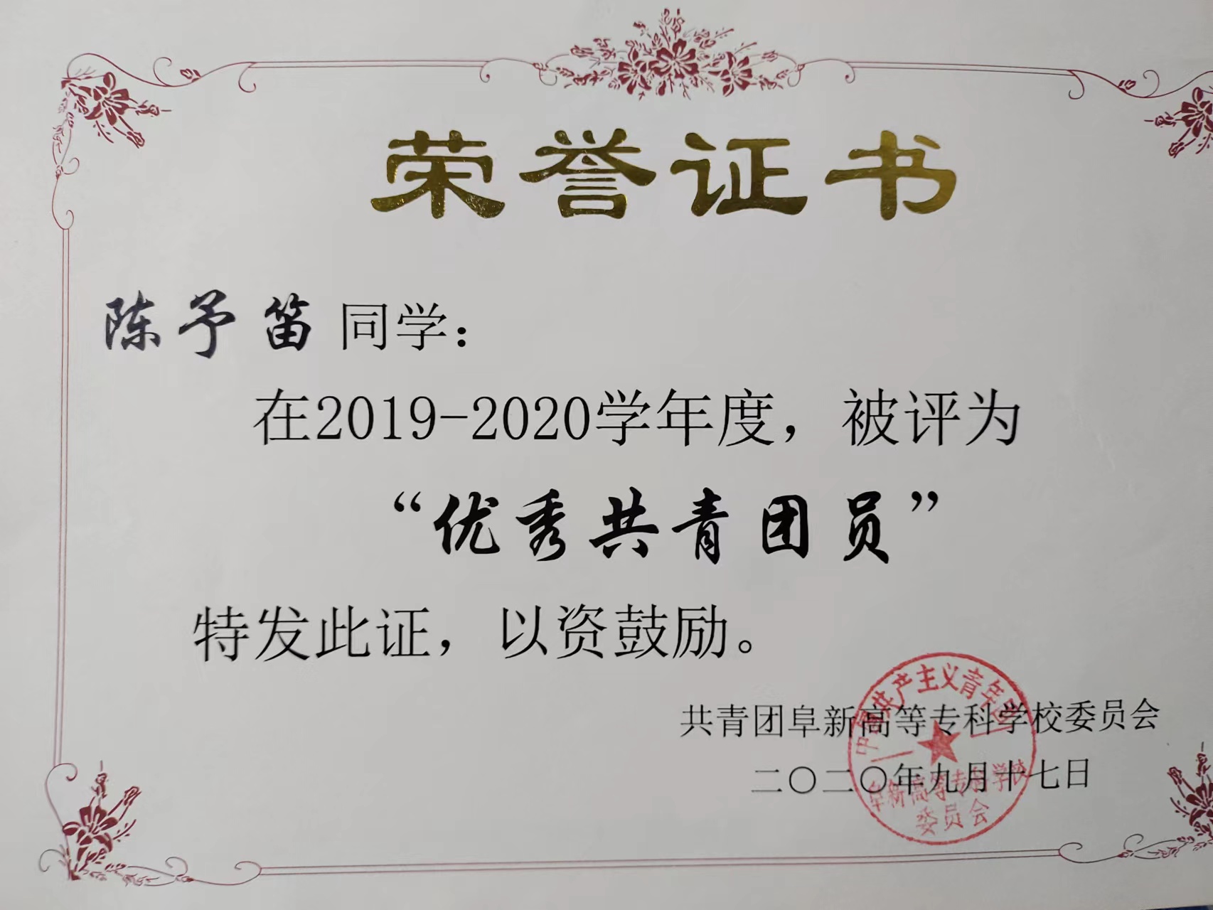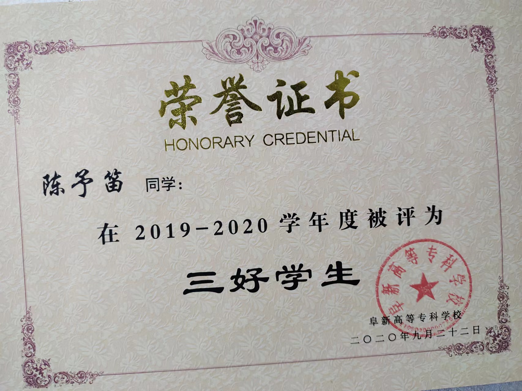 陳予笛同學(xué)在思想政治方面,積極上進(jìn),作風(fēng)端正,認(rèn)真學(xué)習(xí)團(tuán)章,黨章以及國(guó)家重要會(huì)議精神,從理論上武裝和提高自我。學(xué)習(xí)方面,他深知學(xué)習(xí)是學(xué)生的天職,于是始終都把學(xué)習(xí)放在自我生活的重要位置。在校期間,他連續(xù)三年綜合成績(jī)居全系前列,并獲得2019 至202學(xué)年度國(guó)家勵(lì)志獎(jiǎng)學(xué)金。