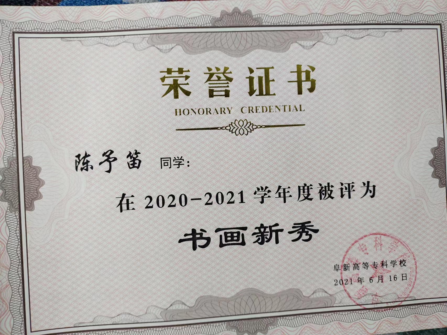 工作方面,該生曾先后擔(dān)任團(tuán)支書(shū),系團(tuán)委宣傳部副部長(zhǎng),正部長(zhǎng)及團(tuán)委負(fù)責(zé)人。任團(tuán)支書(shū)期間,所在班級(jí)被評(píng)為學(xué)年紅旗團(tuán)支部和優(yōu)良學(xué)風(fēng)班;獲得“優(yōu)秀共青團(tuán)員”、“優(yōu)秀學(xué)生干部”、“三好學(xué)生”等光榮稱號(hào)。在緊張的學(xué)習(xí),工作之余,他還喜歡參加多種多樣的課外活動(dòng)及比賽來(lái)調(diào)節(jié)自我,鍛煉自我,提高自我。在 2020-2021 學(xué)年度被評(píng)為“書(shū)畫(huà)新秀”的光榮稱號(hào),因?yàn)殛愑璧淹瑢W(xué)在校學(xué)習(xí)期間,遵章守紀(jì)、成績(jī)優(yōu)異表現(xiàn)突出,被評(píng)為遼寧 省2022屆普通高等學(xué)?!皟?yōu)秀畢業(yè)生“的光榮稱號(hào)。