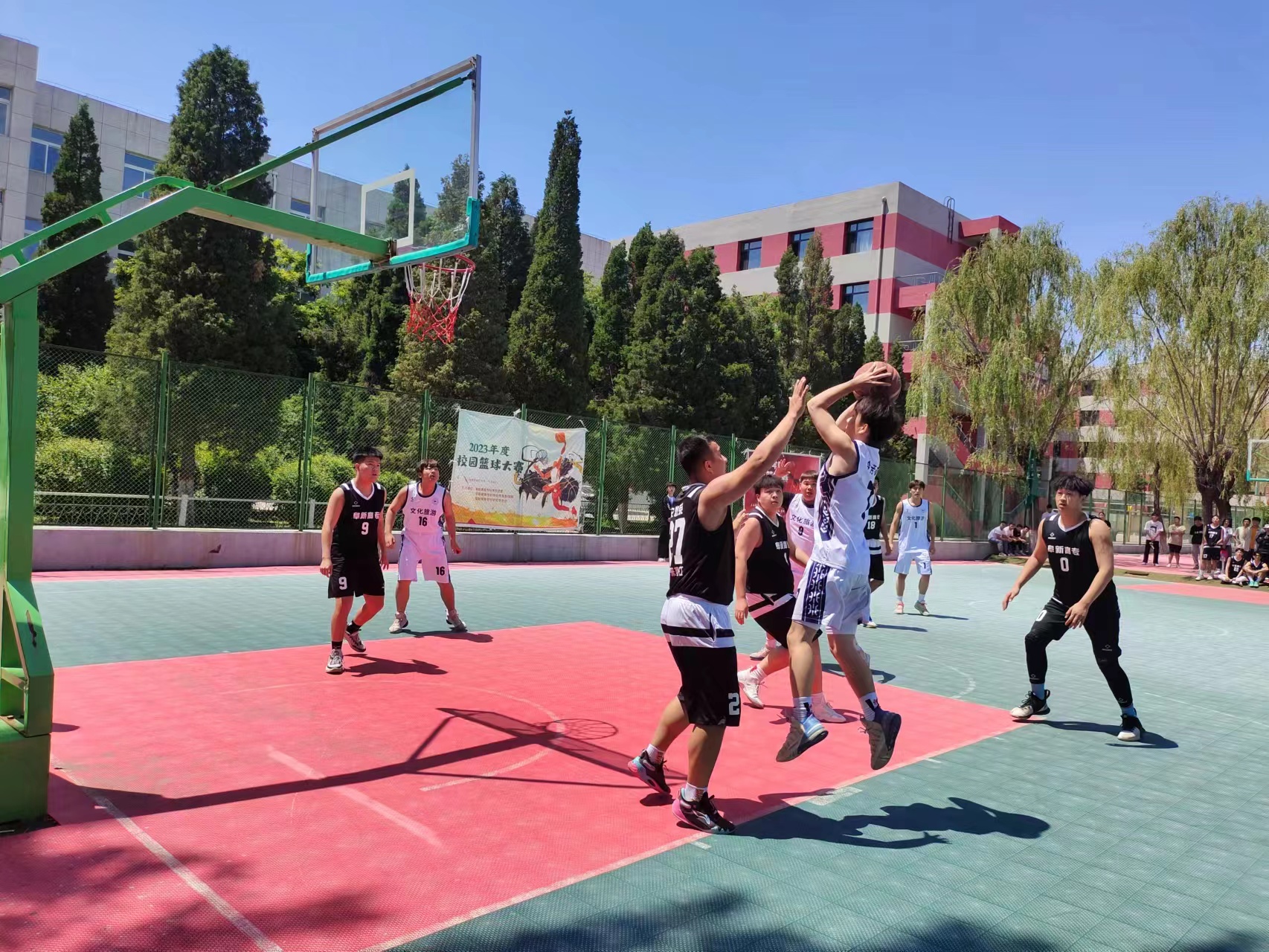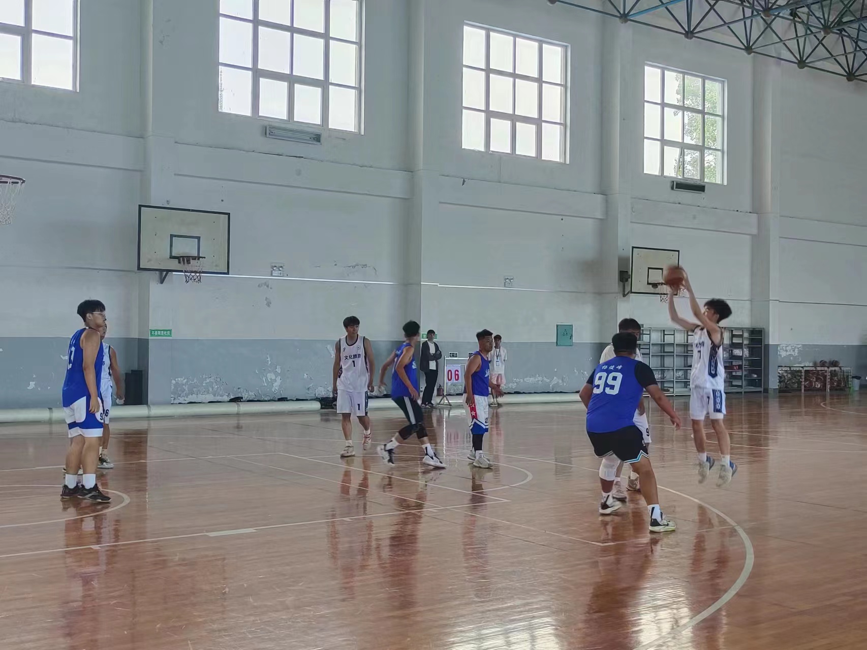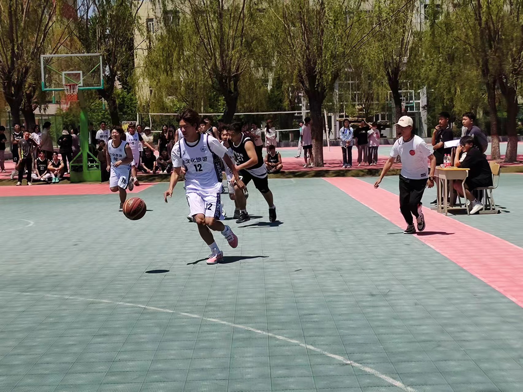 為豐富校園生活,增強(qiáng)同學(xué)們的身體素質(zhì),緩解學(xué)習(xí)壓力,我校如期舉辦了籃球友誼賽。文化旅游系學(xué)生積極參與,與各系同學(xué)在主校區(qū)籃球場(chǎng)展開(kāi)了激烈的比拼。