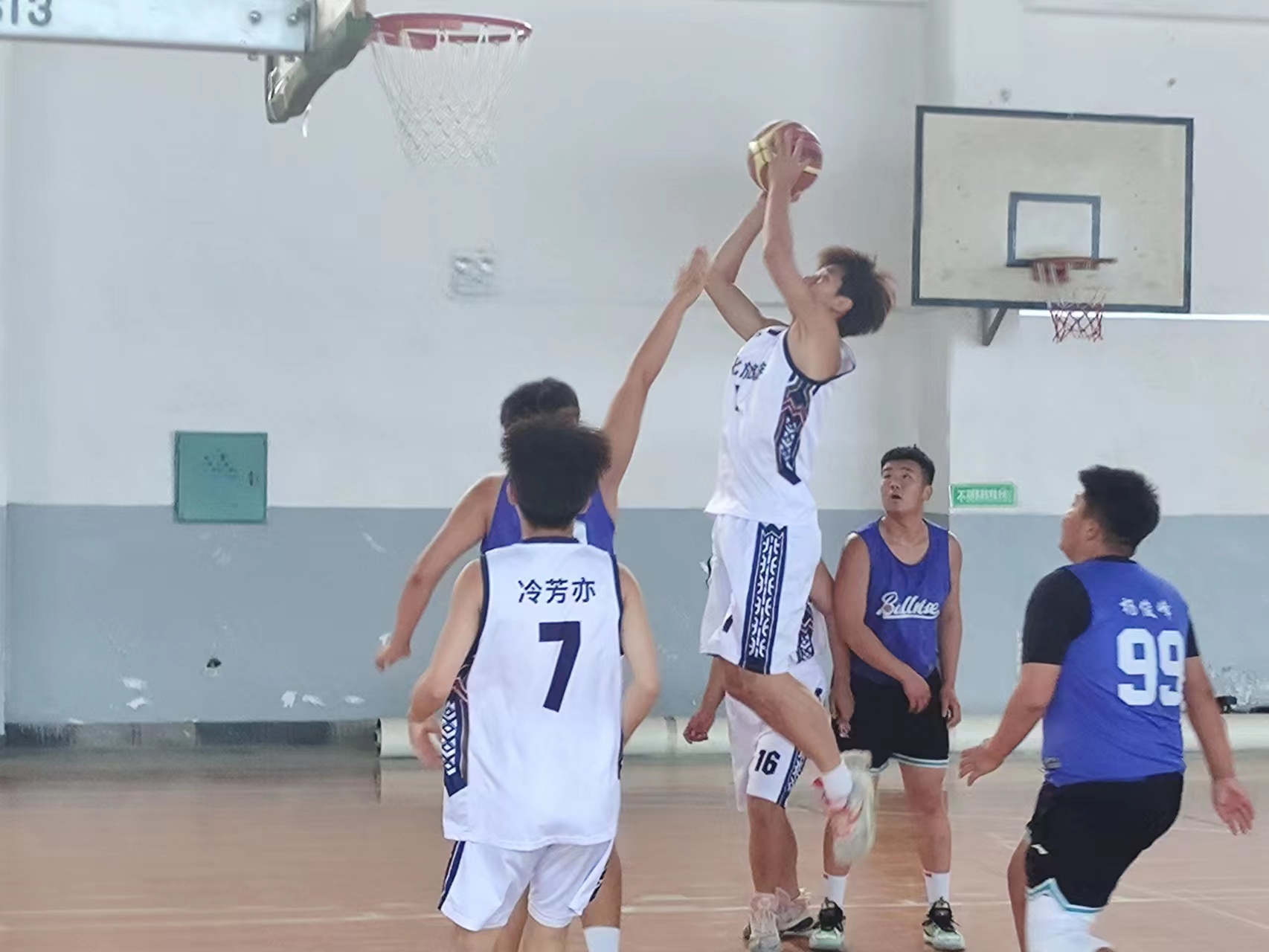 隨著一聲哨響,籃球賽正式拉開(kāi)帷幕,雙方球員個(gè)個(gè)斗志昂揚(yáng),在一次次交鋒中盡情揮灑汗水,氣氛立刻緊張起來(lái)。場(chǎng)內(nèi)大家屏息凝神,看著籃球在空中劃過(guò)一個(gè)完美的拋物線,最終落在了籃框里,場(chǎng)外的同學(xué)隨之發(fā)出一陣激動(dòng)的歡呼聲。即便頂著烈日熱情也絲毫不減,不會(huì)因?yàn)樘鞖獾难谉岫鵁┰?。由于賽程中突發(fā)陰雨,部分場(chǎng)次在老師的組織下有序轉(zhuǎn)至北校區(qū)體育館繼續(xù)進(jìn)行。調(diào)整過(guò)后,球員們迅速進(jìn)入狀態(tài),鞋底磨過(guò)場(chǎng)地迸出的火花,正如少年人對(duì)籃球的滿腔熱忱。較量中我系運(yùn)動(dòng)員團(tuán)結(jié)協(xié)作,配合默契,與各系對(duì)決一路穩(wěn)扎穩(wěn)打,最終晉級(jí)決勝局,成為四支成功脫穎而出的球隊(duì)之一。