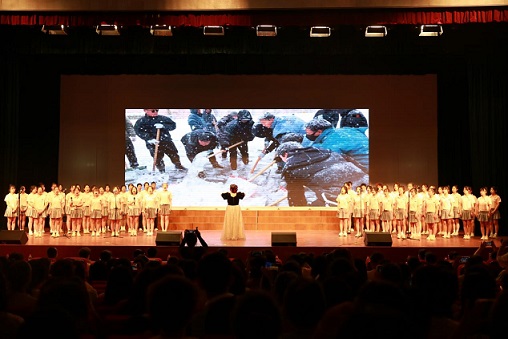 “長(zhǎng)亭外古道邊 芳草碧連天……”未來的道路已在腳下,新的征程即將開啟。最后一曲《送別》把晚會(huì)推向高潮。