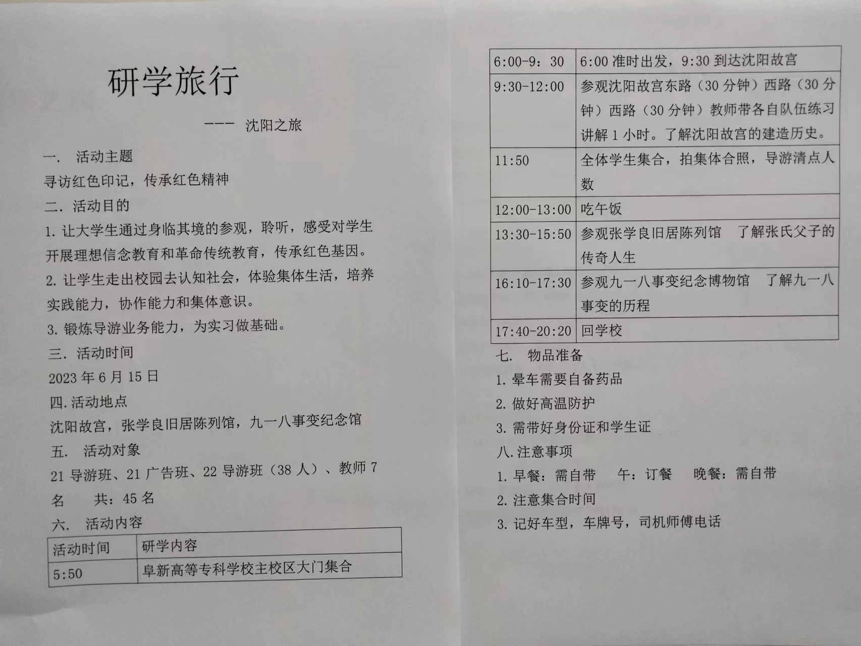 阜新高等??茖W(xué)校導(dǎo)游專業(yè)學(xué)生赴沈陽(yáng)開展實(shí)踐教學(xué)活動(dòng)