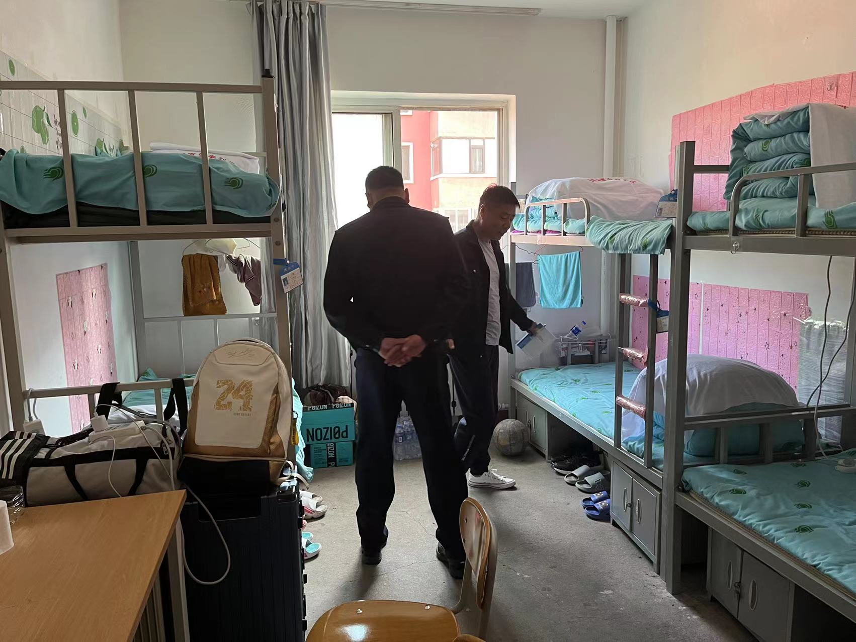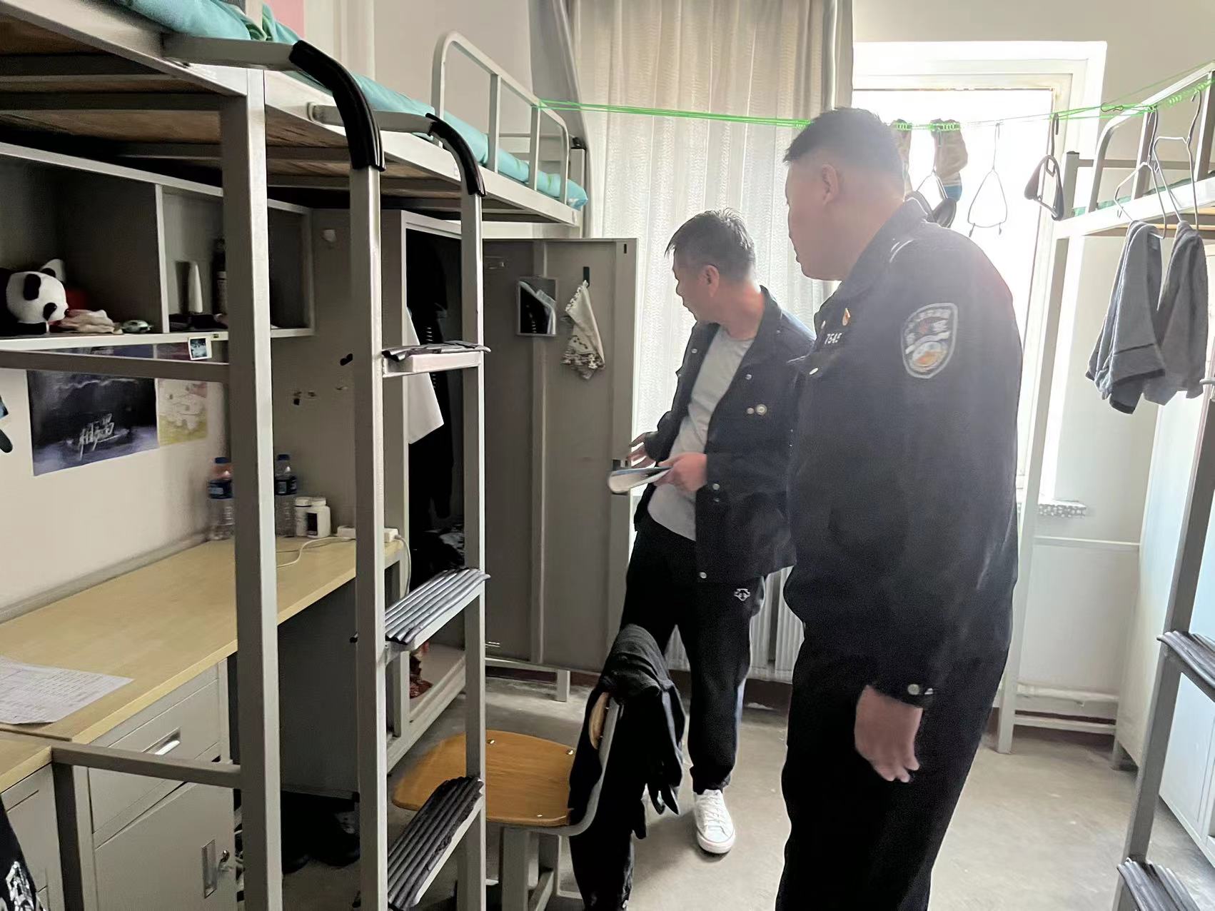 為加強(qiáng)學(xué)生公寓安全管理,及時(shí)排除安全隱患,營造安全的住宿環(huán)境,10月10日下午,公寓管理中心、保衛(wèi)處聯(lián)合礦工街駐校民警對(duì)男生公寓進(jìn)行安全檢查。