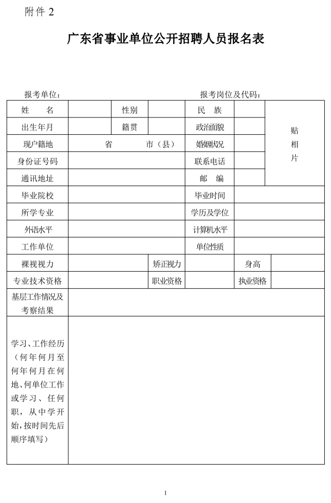 1.《廣東省事業(yè)單位公開招聘人員報名表》(附件2);