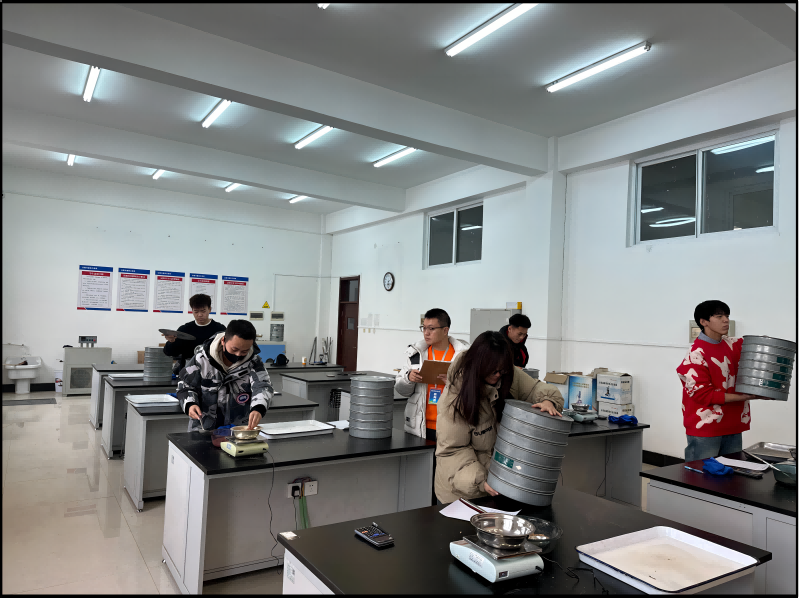 12月15日為材料篩分賽項(xiàng)比賽,該賽項(xiàng)主要檢驗(yàn)參賽選手的基本材料理論知識(shí)和細(xì)集料篩分試驗(yàn)的實(shí)操技能。本次大賽吸引了建筑、道橋、造價(jià)3個(gè)專業(yè)7個(gè)班級共計(jì)60人報(bào)名參加,大賽預(yù)賽先是進(jìn)行了基礎(chǔ)理論知識(shí)考試,最終篩選出30人參加材料篩分的實(shí)操比賽。