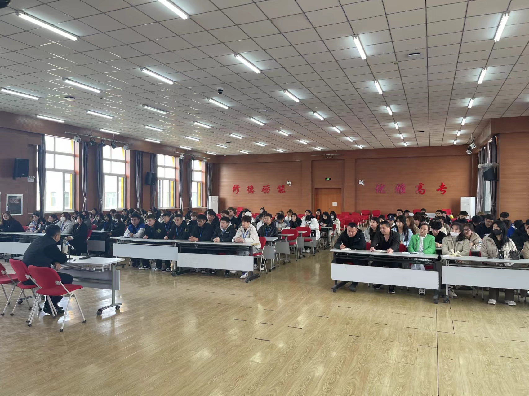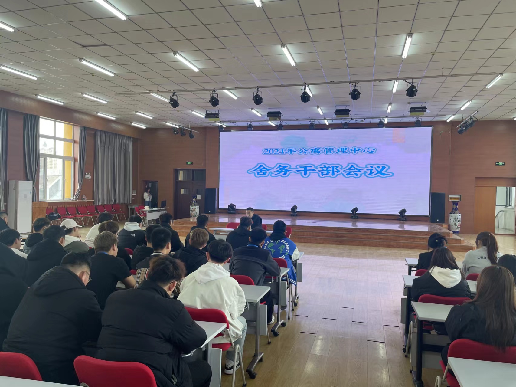 為更好地落實學(xué)校愛國衛(wèi)生清掃月活動要求,打造干凈整潔的住宿環(huán)境。3月19日下午,公寓管理中心在北校區(qū)礪能樓報告廳召開舍務(wù)干部會議,全體公寓老師及舍務(wù)干部參加會議。