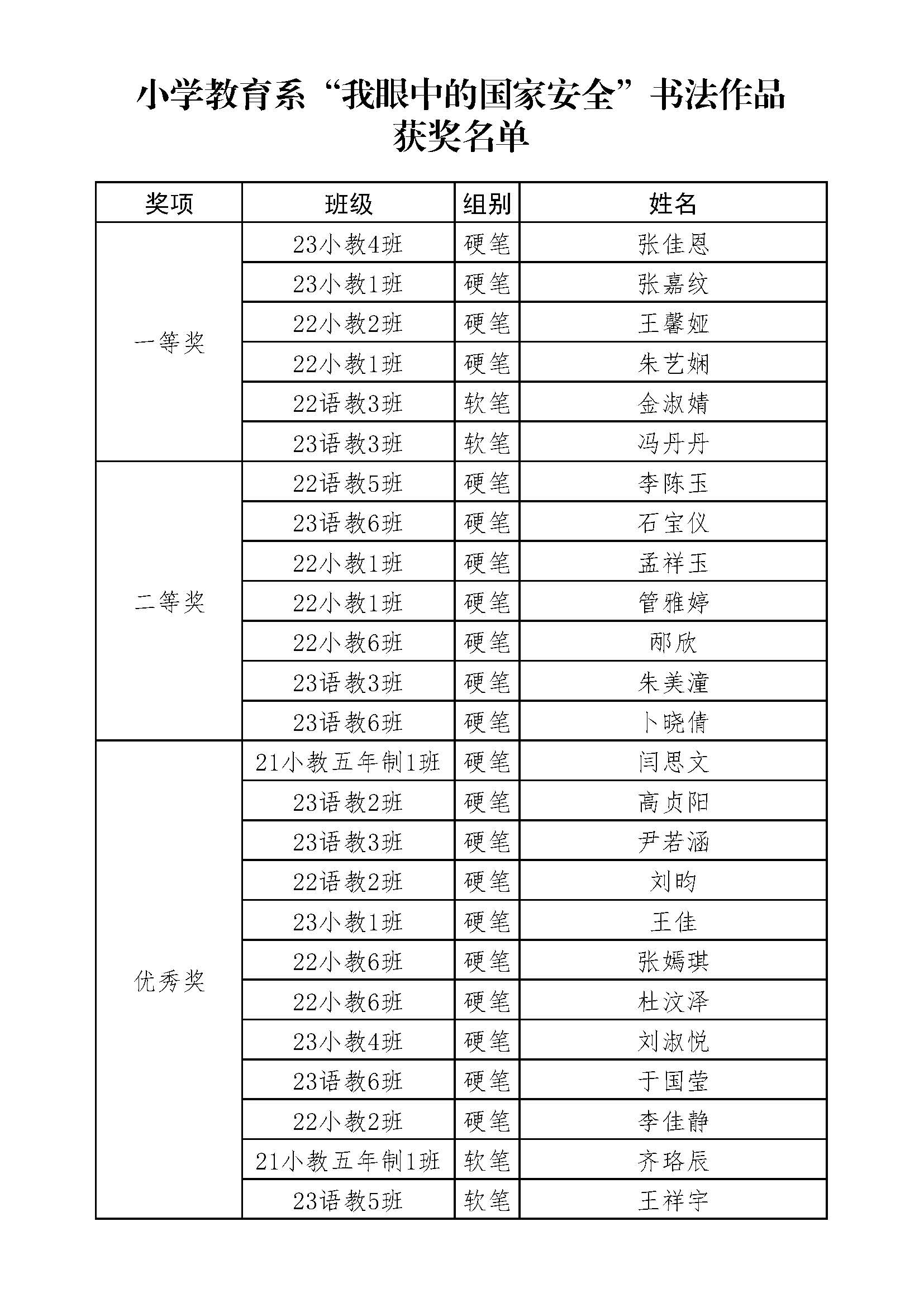 小學(xué)教育系“我眼中的國家安全”書法作品獲獎名單