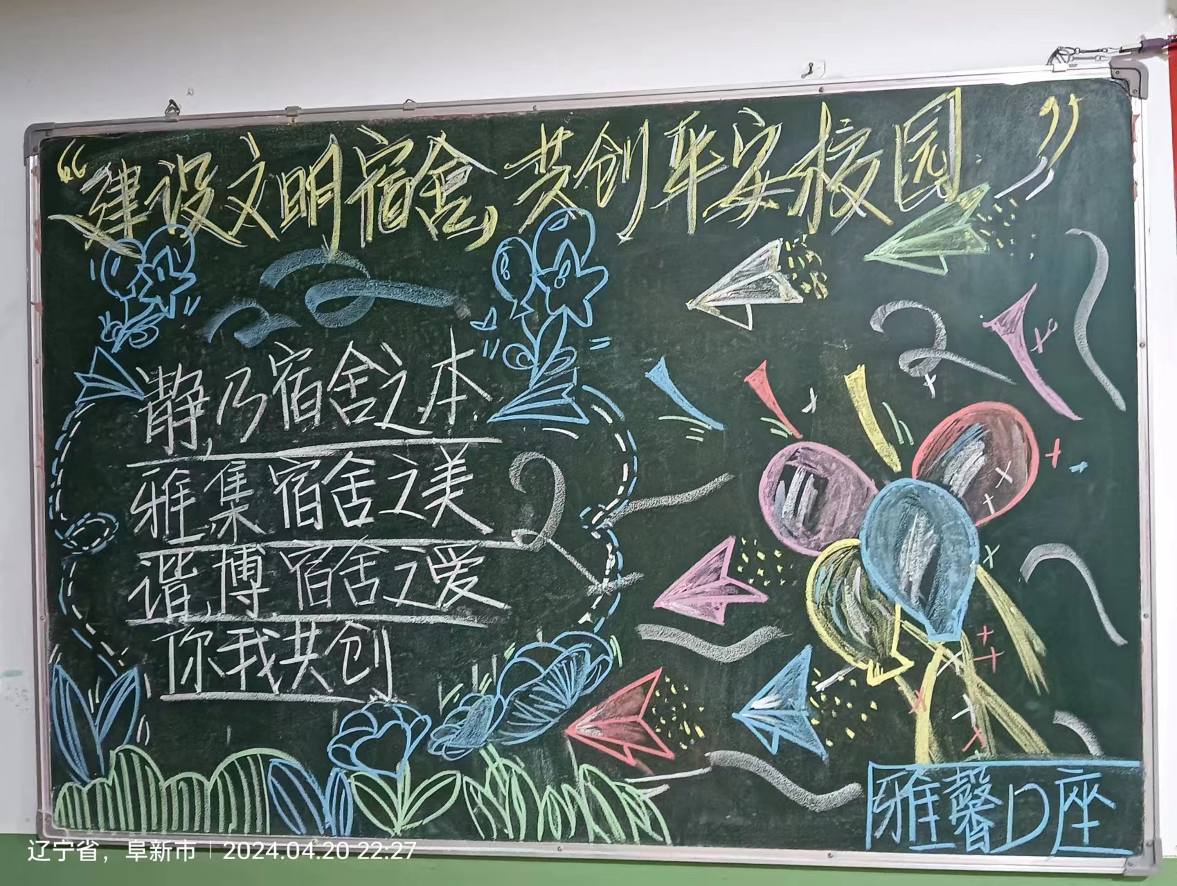 為全面落實中共遼寧省委教育工委、遼寧省教育廳印發(fā)《關(guān)于組織全省高校開展文明宿舍建設(shè)活動的通知》的相關(guān)要求,近日,各公寓樓積極開展“文明宿舍樹新風(fēng)”文明月主題活動,通過設(shè)計黑板報等形式,營造和諧宿舍文化氛圍,接下來公寓管理中心將開展一系列文明宿舍建設(shè)相關(guān)活動,進一步推動學(xué)校整體文明水平的提升。