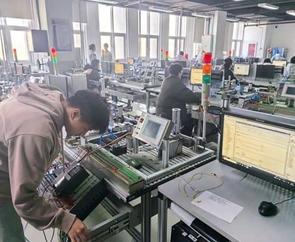 為積極主動(dòng)拓展校際交流與合作,學(xué)習(xí)國(guó)內(nèi)一流職業(yè)院校高質(zhì)量辦學(xué)經(jīng)驗(yàn),3月29日上午,由市教育局副局長(zhǎng)、學(xué)校籌備組副組長(zhǎng)李妮帶隊(duì),攜我校質(zhì)量辦、教務(wù)處、電信系、裝備系及專(zhuān)家工作室等相關(guān)部門(mén)負(fù)責(zé)人,赴天津職業(yè)技術(shù)師范大學(xué)開(kāi)展學(xué)習(xí)交流活動(dòng)。我校訪問(wèn)團(tuán)先后參觀了天津職業(yè)技術(shù)師范大學(xué)國(guó)家級(jí)工程實(shí)訓(xùn)中心、技能大師工作室、世界職業(yè)技術(shù)教育發(fā)展大會(huì)成果轉(zhuǎn)化與研究推廣中心等場(chǎng)所,聽(tīng)取了學(xué)校關(guān)于智能制造實(shí)訓(xùn)中心建設(shè)、校企共建實(shí)訓(xùn)課程體系開(kāi)發(fā)、世界職業(yè)技能大賽賽訓(xùn)成果、技能大師創(chuàng)新工作室建設(shè)運(yùn)行、科研成果轉(zhuǎn)化推廣等方面工作的情況介紹。天津職業(yè)技術(shù)師范大學(xué)校黨委常委、副校長(zhǎng)李富森陪同我校訪問(wèn)團(tuán)一行參觀并舉行座談交流會(huì)。