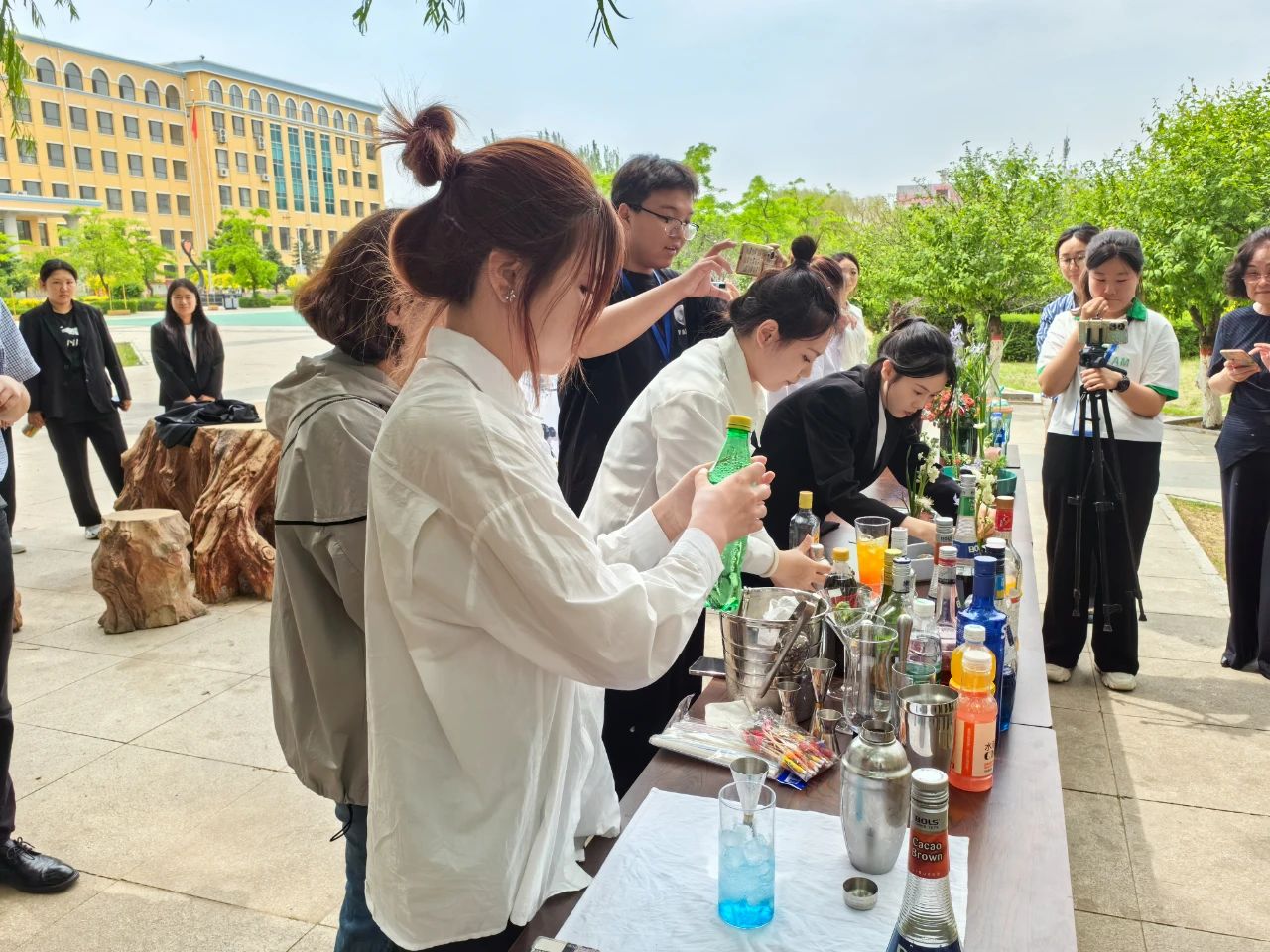 值得一提的是,文旅系在本次成果展中特別設(shè)置了一個調(diào)酒和中國花藝的互動體驗區(qū),將專業(yè)課堂搬到校園中,讓觀眾親身參與并體驗學(xué)生們的作品。在這個區(qū)域里,觀眾們可以親自品嘗現(xiàn)場調(diào)制的雞尾酒,觀賞中國插花藝術(shù),感受傳統(tǒng)與現(xiàn)代的交融,領(lǐng)悟其深厚的文化底蘊與獨具特色的藝術(shù)魅力。