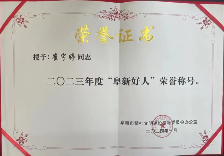 為深入學習貫徹黨的二十大精神,學習貫徹習近平文化思想,貫徹落實習近平總書記關于精神文明建設的重要論述和給“中國好人”重要回信精神,進一步做好“阜新好人”典型學習宣傳工作,弘揚向上向善正能量,樹立文明和諧新風尚,全面提升公民素質(zhì)和社會文明程度,市精神文明辦組織開展了2023年度“阜新好人”推選活動。經(jīng)過組織推薦、材料審核、資格審查、評審會評審等程序,我校農(nóng)牧系學生崔宇婷被授予2023年度“阜新好人”稱號。