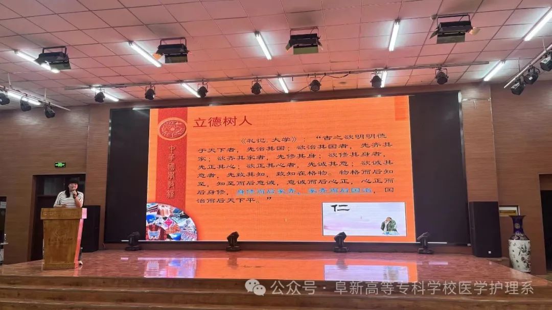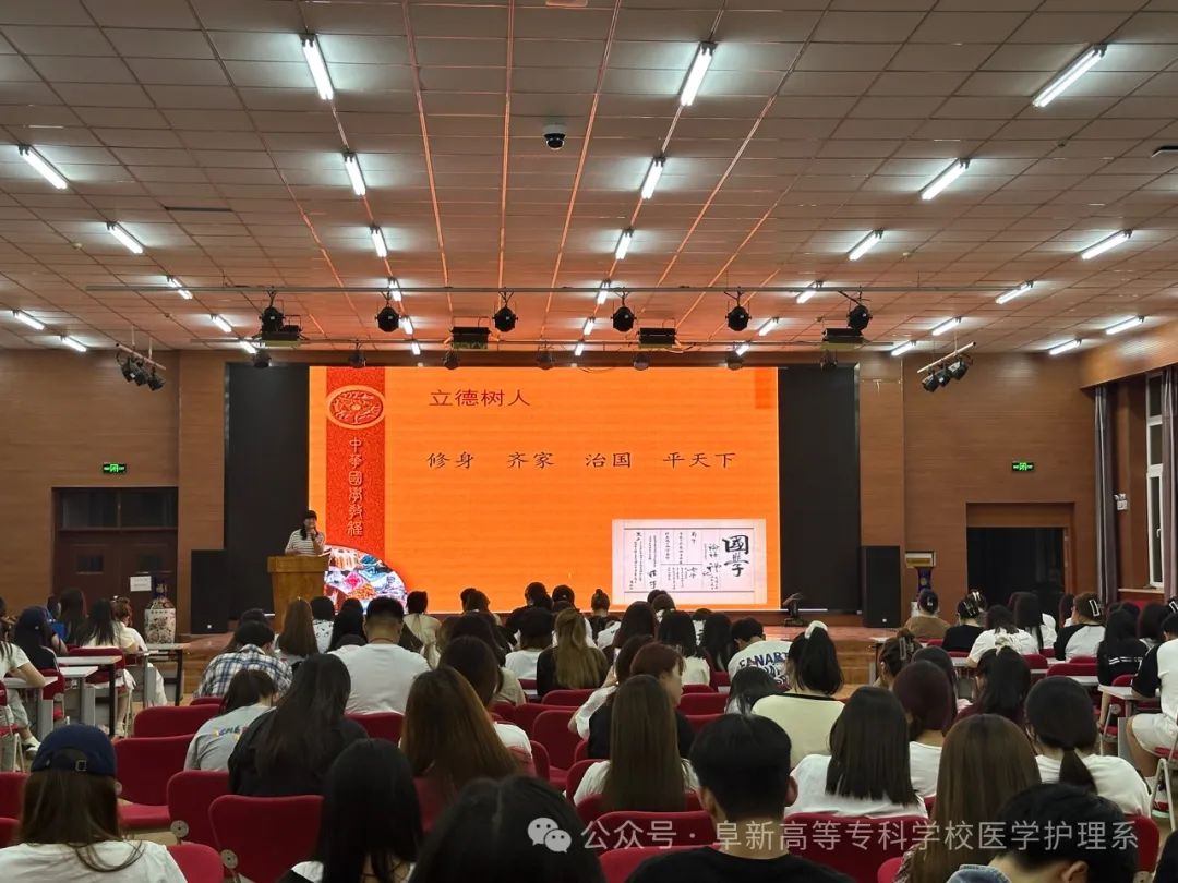 為傳承和弘揚中華優(yōu)秀傳統(tǒng)文化,堅定文化自信,引領(lǐng)學生樹立遠大理想,結(jié)合《阜新高等??茖W校學風建設(shè)實施方案》文件精神和學生思想實際情況,6月4日,醫(yī)學護理系在礪能樓五樓報告廳開展了由黨支部書記張燕主講的“國學講座-立志奮斗篇”專題活動。醫(yī)學護理系輔導員、學生干部以及2023級學生參加本次活動。