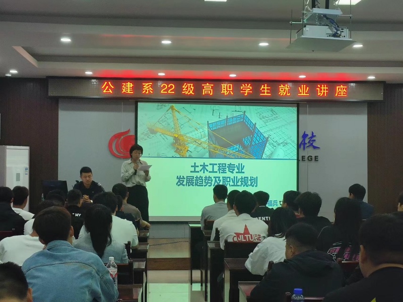 聘請土建行業(yè)專家來校做職業(yè)規(guī)劃就業(yè)講座,讓學生了解行業(yè)狀況和未來趨勢,關注國家社會發(fā)展和所學專業(yè)就業(yè)的前景,幫助學生更加清楚明白自身的發(fā)展方向。通過奮斗一線工程人的親身經歷,引導學習明確學習目的、端正學習態(tài)度,積極主動地投身于學習之中,將個人能力、自我價值的實現(xiàn)同社會發(fā)展需要相結合,踐行終身學習理念,提升優(yōu)良學風。