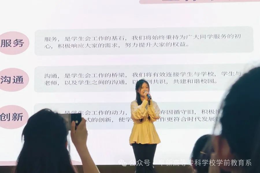 為了給廣大學(xué)生提供一個(gè)展示才華、鍛煉自我的舞臺(tái),強(qiáng)化學(xué)生會(huì)自我管理、自我教育、自我服務(wù)的職能,進(jìn)一步增強(qiáng)學(xué)生會(huì)的凝聚力和戰(zhàn)斗力,更好的服務(wù)于學(xué)校發(fā)展與建設(shè),更好的服務(wù)于廣大同學(xué),學(xué)前教育系于6月5日下午在勵(lì)能樓五樓報(bào)告廳召開了“后浪奔涌,薪火相傳”學(xué)生換屆選舉大會(huì),出席本次大會(huì)的有學(xué)前教育系黨支部書記姚雷老師、主任崔英芬老師及輔導(dǎo)員和班主任,學(xué)生會(huì)各部部長(zhǎng)、以及參選學(xué)生會(huì)人員和各班級(jí)學(xué)生代表。