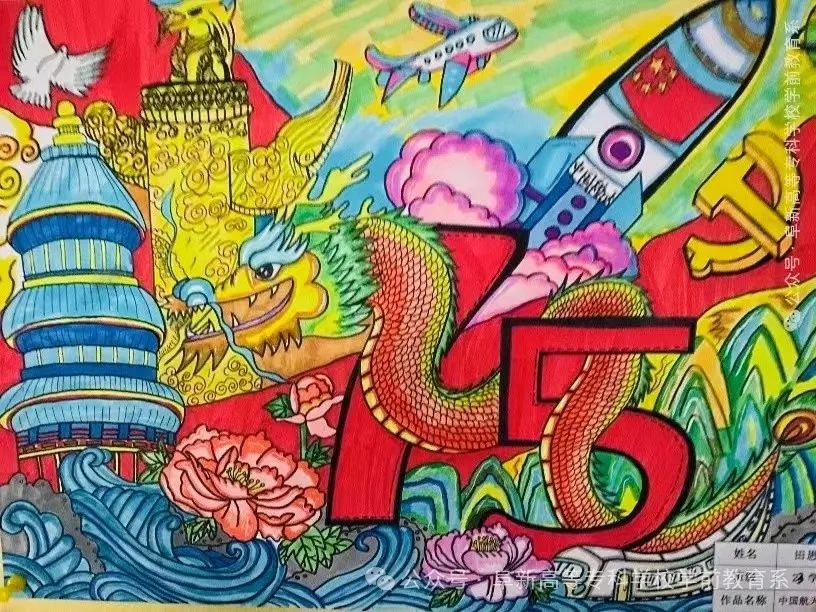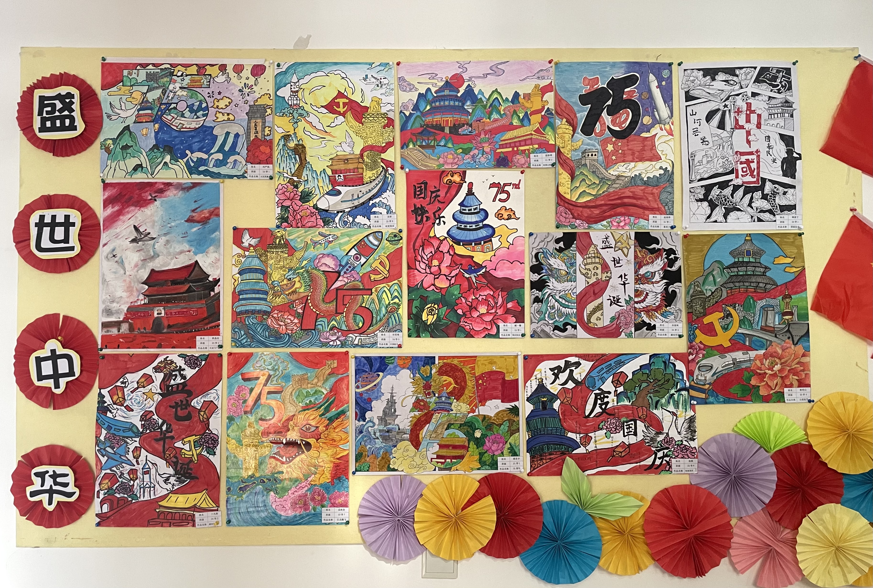 10月7日,學(xué)子們紛紛向老師投稿。瞧,紅色象征革命,黃色象征光明。白鴿象征寓意著祖國(guó)和平,絢麗色彩交織成祖國(guó)的壯麗畫卷。五星紅旗飄揚(yáng),天安門莊嚴(yán)肅穆,每一筆都訴說(shuō)著新中國(guó) 75 年的輝煌歷程,處處都洋溢著學(xué)子們對(duì)祖國(guó)的熱愛(ài)與自豪。這些愛(ài)國(guó)畫卷不僅是藝術(shù)的展示,更是學(xué)子們愛(ài)國(guó)情懷的表達(dá)。