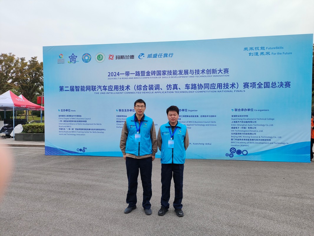 我校裝備制造系新能源汽車專業(yè)的劉宏南、馬立強兩位教師代表遼寧阜新參加了職工組比賽。為迎接本次大賽,學校各級領導給予了高度重視和大力支持,提前派出參賽教師團隊赴上海進行為期三天的賽前專項培訓,為參賽提供了充分準備。培訓不僅提升了參賽教師在智能網(wǎng)聯(lián)汽車領域的實操技能,也進一步推動了學校智能方向的發(fā)展和教師團隊的綜合能力提升。