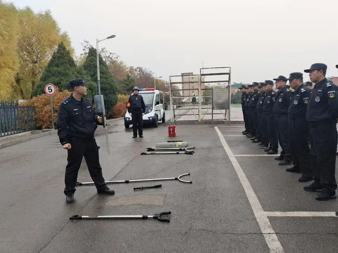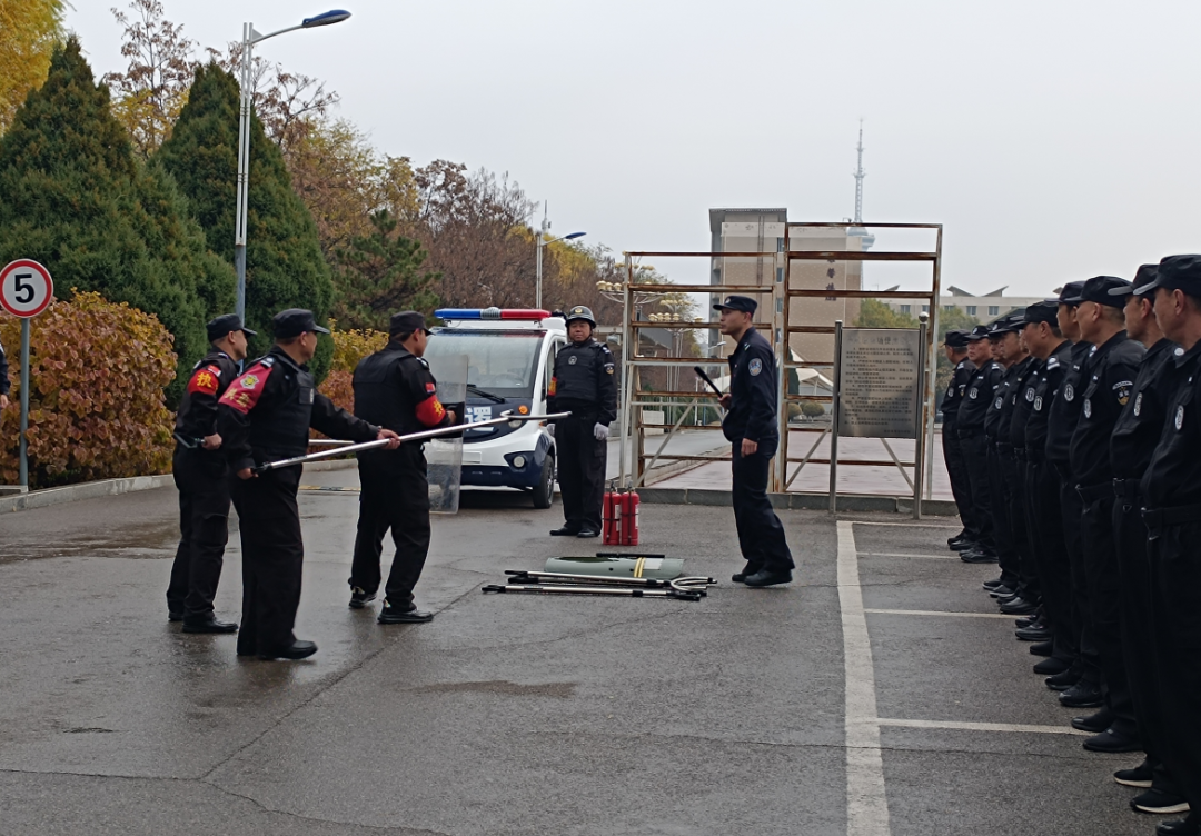 礦工街派出所王朔警官結(jié)合我校反恐防暴實際工作,向現(xiàn)場保衛(wèi)、保安隊員們講授了反恐技能,從常見的暴恐事件的類型、特點、處理方式入手,展示并講解了盾牌、拘束叉等警務(wù)器材的功能和使用方法,并針對如何更有效地迎擊和制服暴徒等應(yīng)急處置進(jìn)行現(xiàn)場演練和培訓(xùn)。