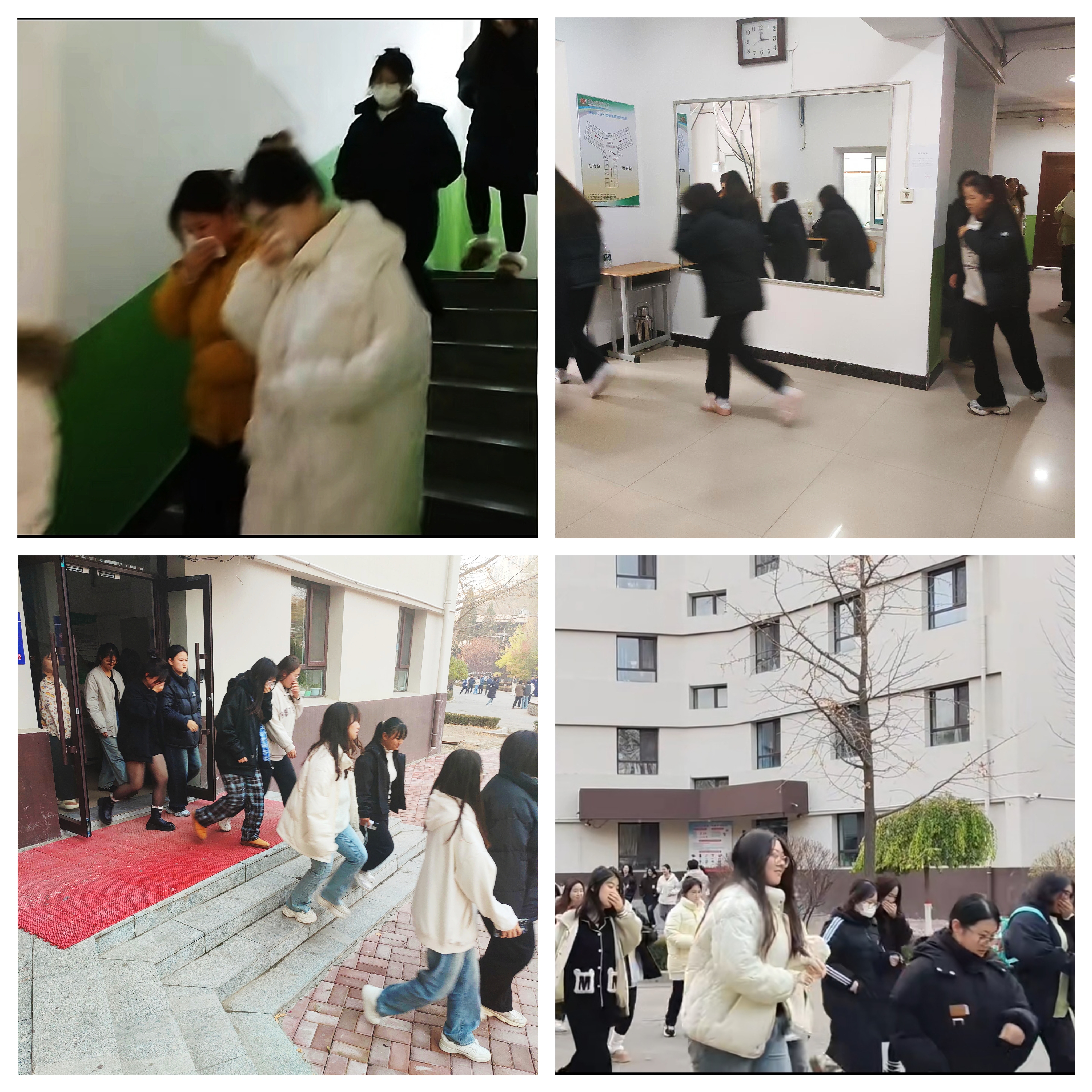 下午3時,警報聲響起,演練開始。各寢室的學生們迅速做出反應,在公寓老師和學生干部的組織下,紛紛用濕毛巾捂住口鼻,彎腰低姿,按照預定的疏散路線快速、有序地向操場撤離。疏散過程中,老師們時刻關注著學生的情況,不斷提醒同學們保持冷靜,注意安全避免出現擁擠、踩踏等情況。