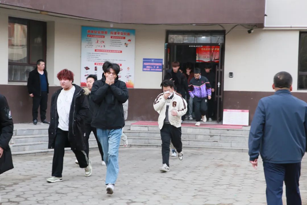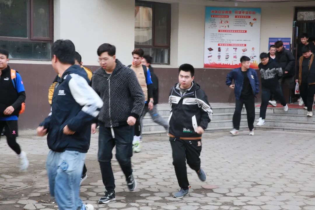下午15:00分警報(bào)拉響,全體住宿學(xué)生在公寓管理員及各系負(fù)責(zé)老師的引導(dǎo)下,按照指定的路線、有序、快速、安全的撤離到操場(chǎng)空曠區(qū)域。