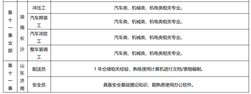 第十一事業(yè)部隸屬于汽車事業(yè)群,成立于 2003 年 8 月 16 日,主要承擔(dān)公司各車型的沖壓、焊裝、涂裝、總裝四大工藝和汽車飾件、車身輕量化部件的生產(chǎn)任務(wù)。目前主要生產(chǎn)王朝系列秦、漢、唐、宋、元,海洋系列 e2、海豚,軍艦系列驅(qū)逐艦 05,騰勢等車型。