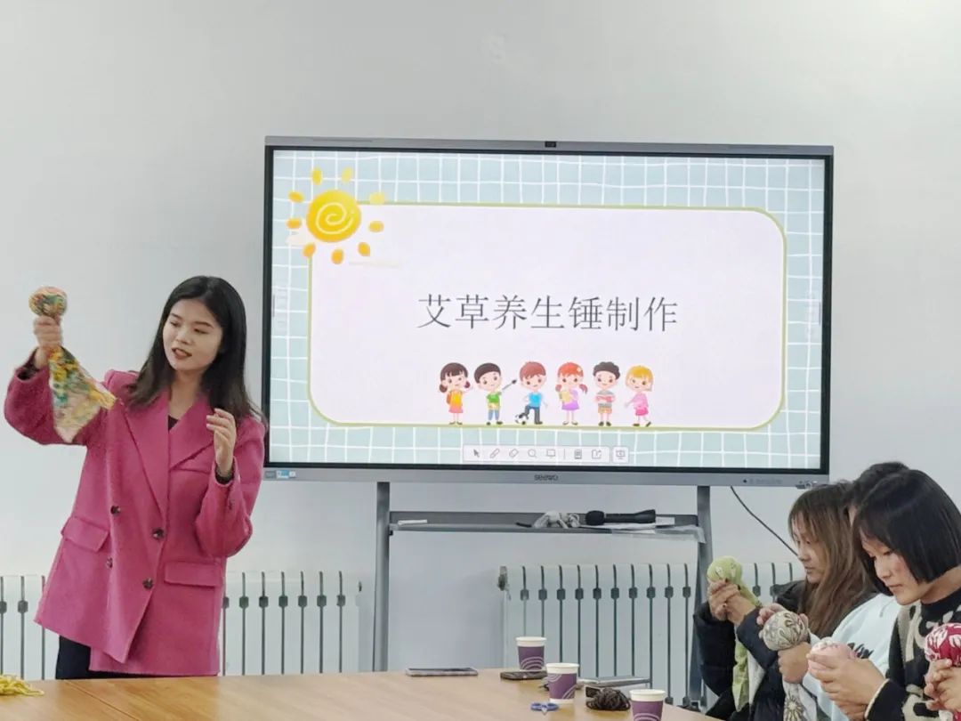 接著,王雨竹老師進(jìn)一步介紹了艾草的藥用價(jià)值和在健康養(yǎng)生方面的功效。艾葉在我國很早就被廣泛作為內(nèi)服藥用來治療疾病,現(xiàn)代技術(shù)又為艾葉的廣泛應(yīng)用開辟了更為廣闊的前景。隨后,王老師為大家展示了艾草錘的制作方法,同學(xué)們都積極地學(xué)習(xí)并進(jìn)行制作。