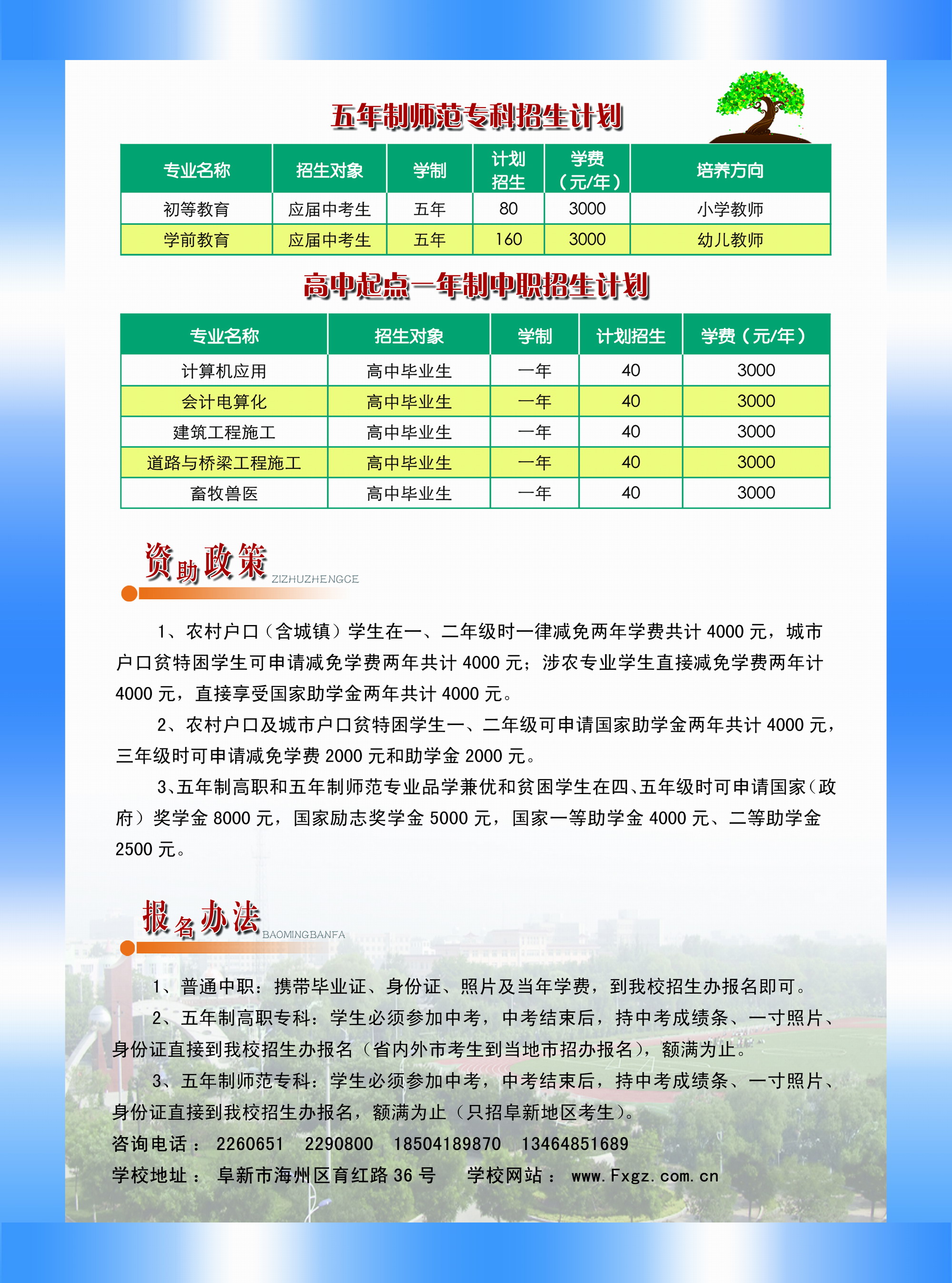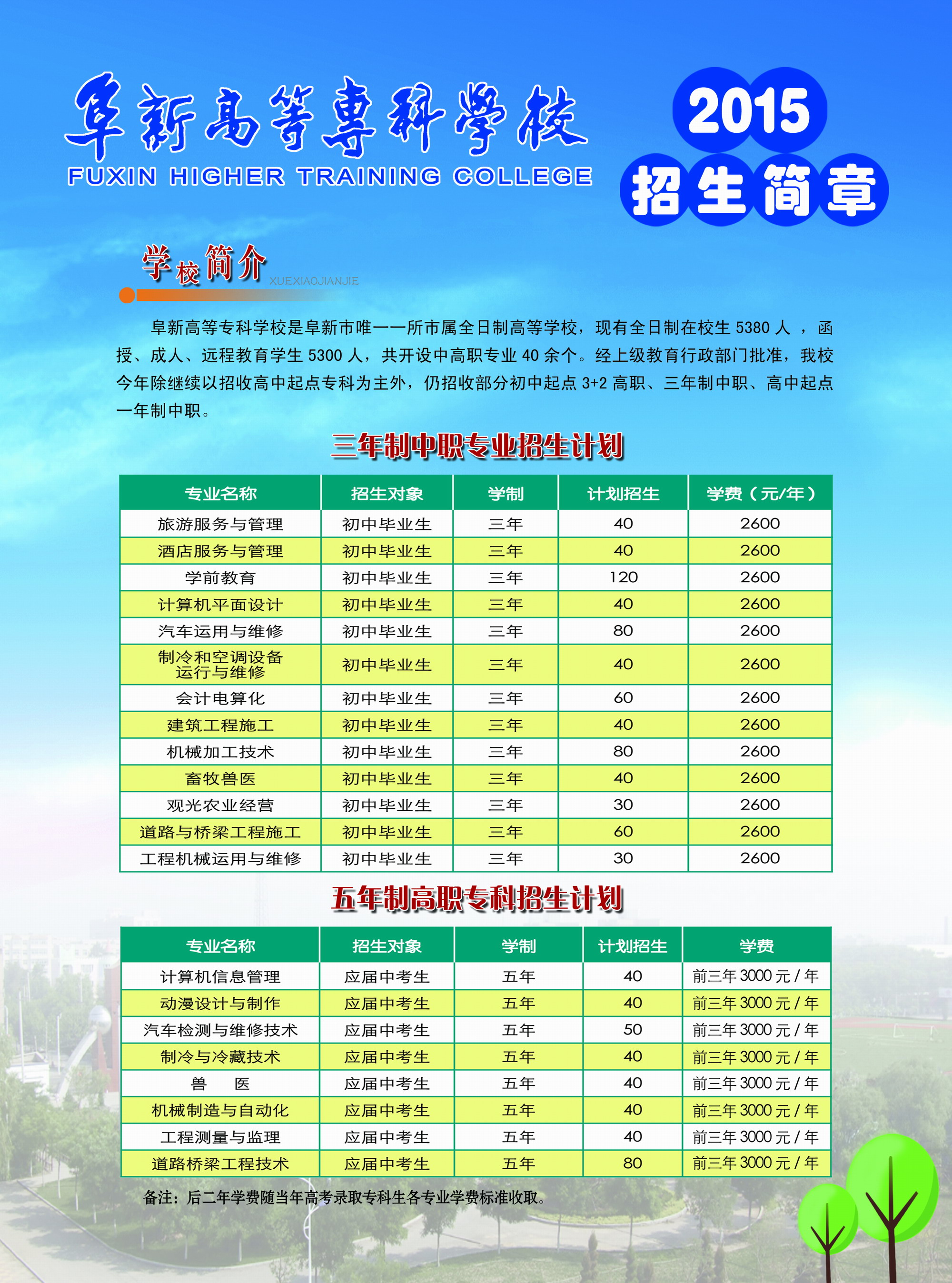 阜新高等??茖W(xué)校2016年單獨招生工作方案(普通類)